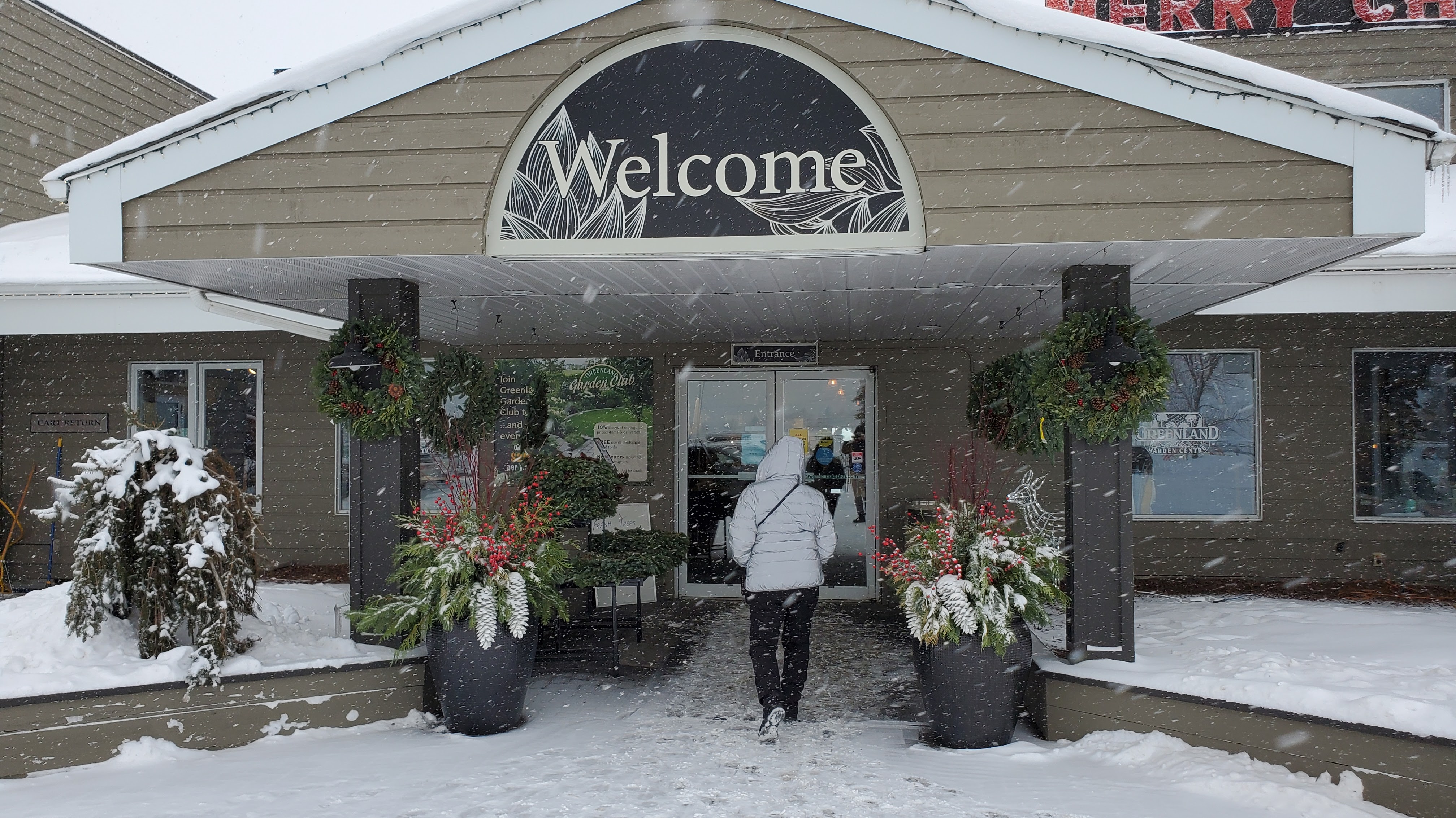 While the temperatures were rising the snow was falling – yes indeed today turned out to be more of a snow event than first forecast, but we were not detered. We ventured out to, of all places, the garden center. Lots of Christmas decorations were not left over… looks like it was a good year for selling anything festive and related to Christmas.