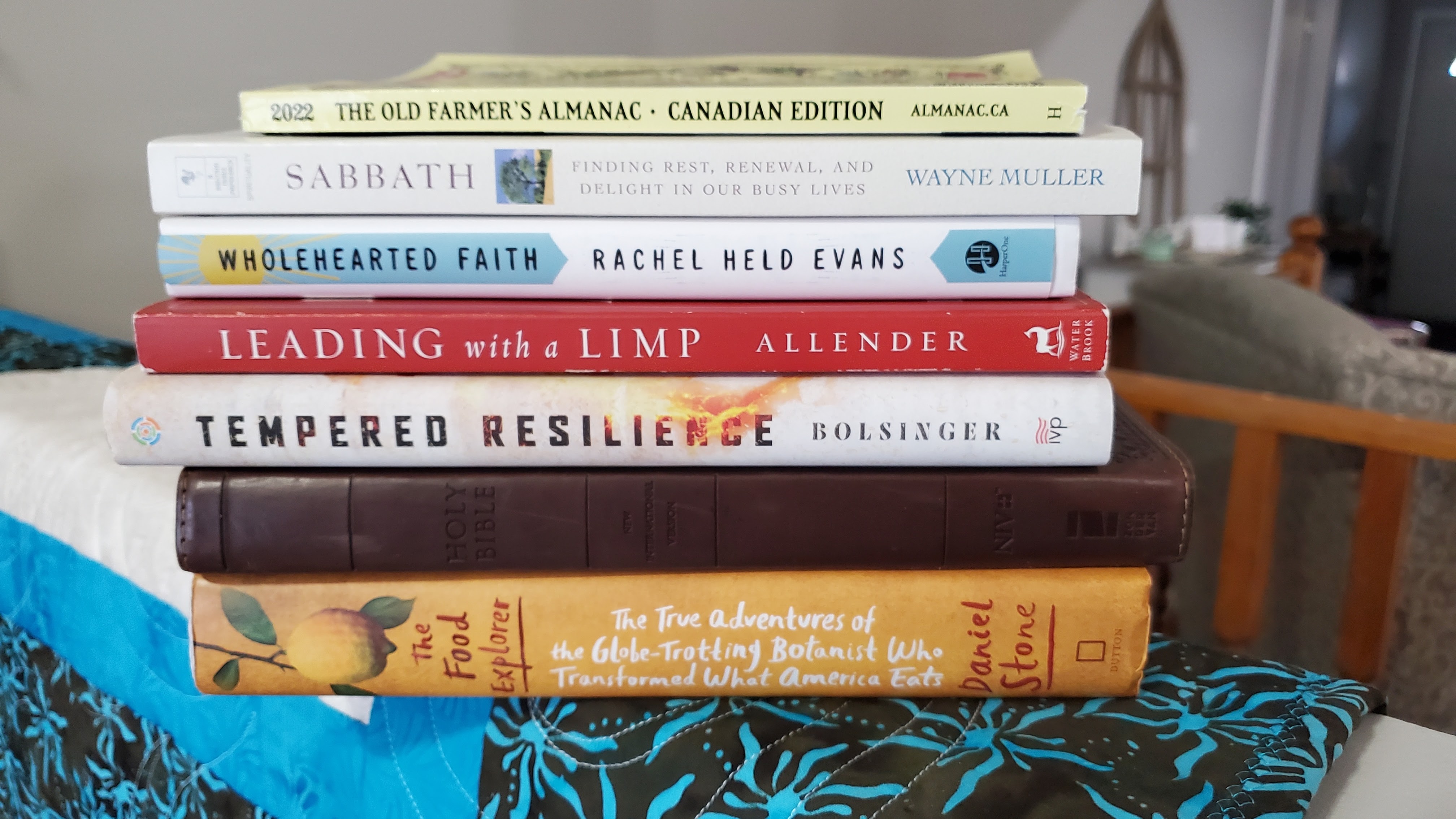 So why these books? Well, four have been gifts lately and I’m enjoying them. I was happy to get Tempered Resilience as the author wrote Canoeing the Mountains which I really enjoyed. Rachel Held Evans who passed away before this book was completed is a voice that gained great popularity as she articulated voiced what many felt about their experience of the church. Leading with a limp I’ve had for a while and have heard nothing buy great things so looking forward to it. The Food Explorer I’m currently reading and it is a very different book for me but I’m enjoying the story of how some of our favourite foods came to North America and apart of our diet. Fascinating. Sabbath was the most recent gift and I’ve got it on the list for later. And of course my Bible. I bought this one some time ago with the intent of moving notes and comments from my old Bible to this one. I have some of it done, but looking forward to further work in the months to come.