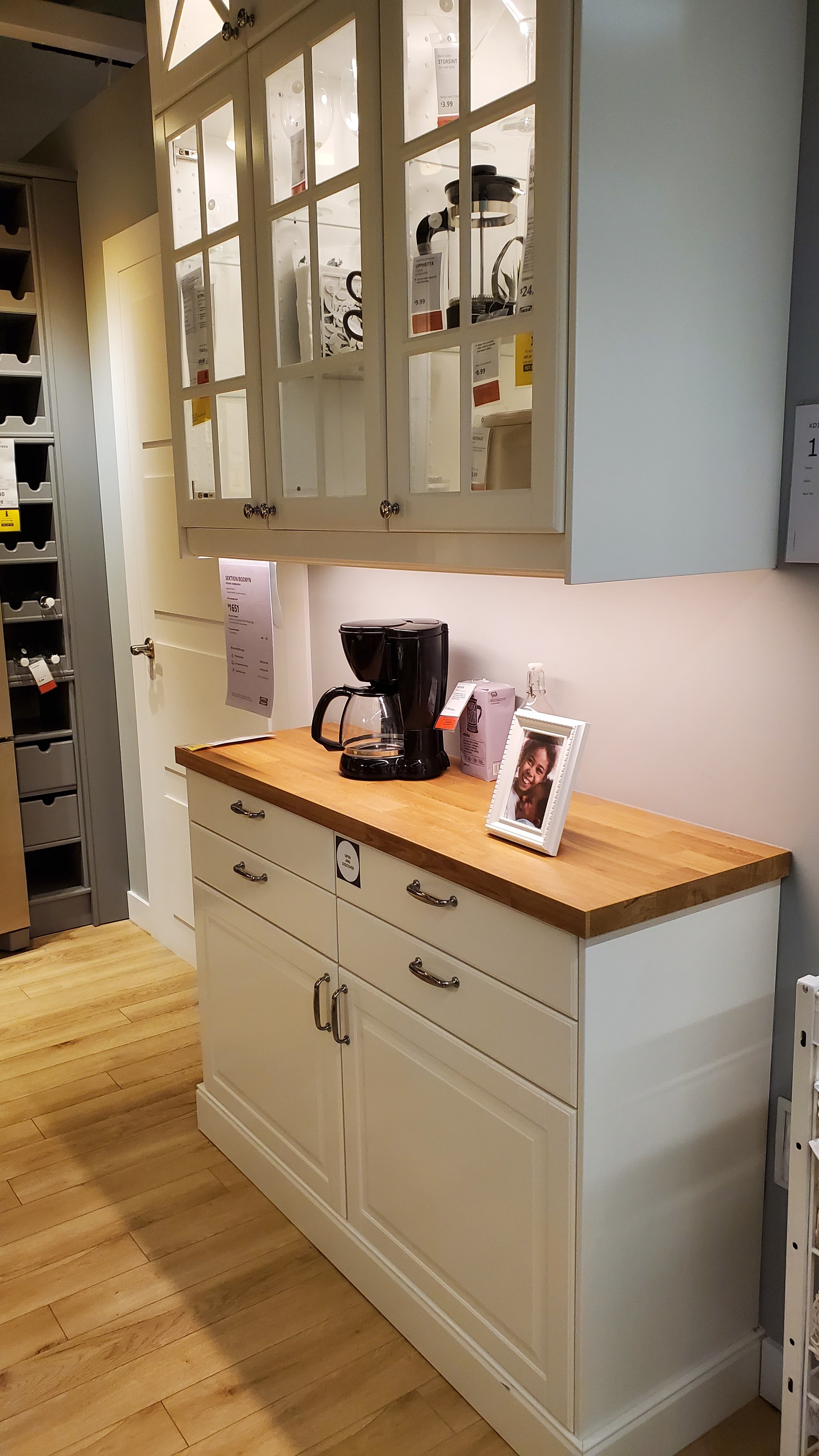 You can sign on to your Ikea account (yes we have one) and use their planning tool. Wendy has become and expert at it. It allows you to measure, swap out, change faces, colours. It really is good. You can view it from floor level or look down on it from above. It gives you a grid so you know measurements and you can even change the wall colours to match what you have.