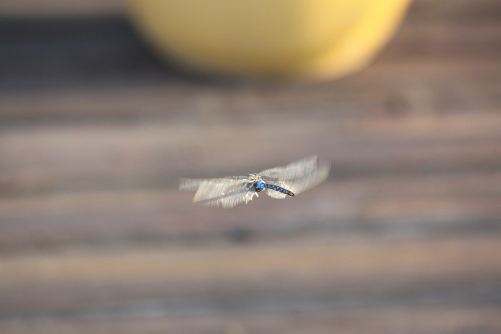 If you live near the water, and have lilies and reeds around you’ll have dragonflies. So I wondered if could I get a shot of a dragonfly hovering.