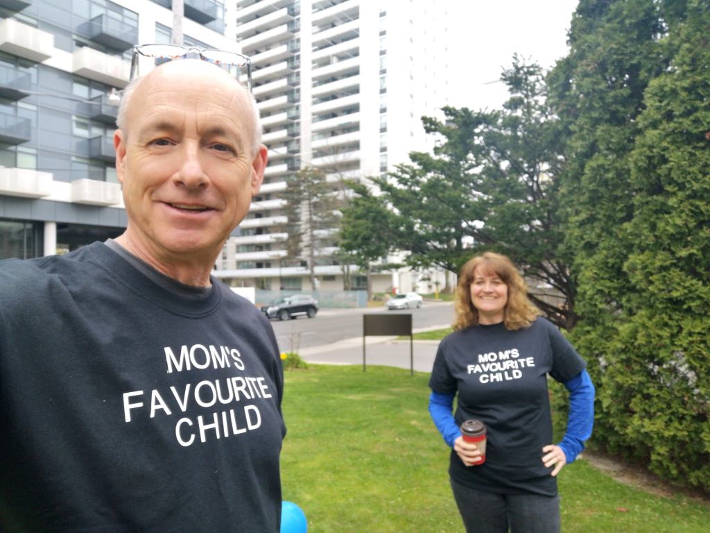 I’m her favourite – another banter back and forth. Cath had t-shirts made for us a few Mother’s Day ago and we wore the shirts to see Mom, who was locked up due to the pandemic. Despite rumours, she was not incarcerated for bad behaviour.