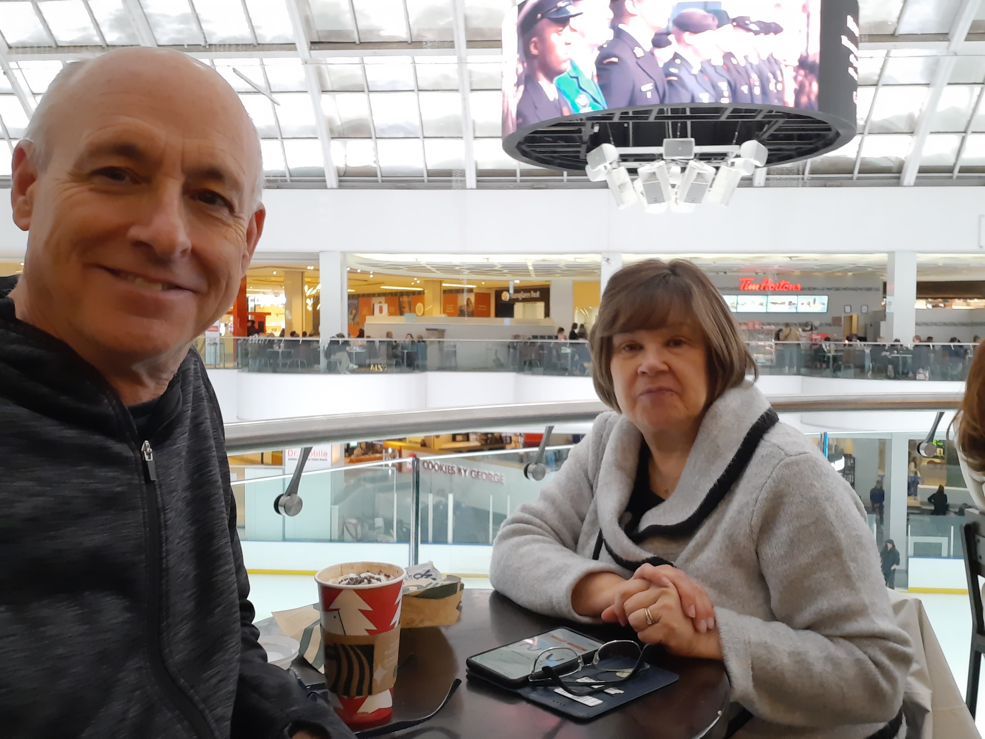 The snowfall and the calendar reminded Wendy and I that Christmas is also not that far off and so we headed to everyone’s favourite mall – the West Edmonton Mall. Okay, maybe that’s an exaggeration that it is everyone’s favourite. But one end of the mall is rather quiet and there is a Starbucks overlooking the rink. It’s a great spot to sit and watch and enjoy a few minutes together.