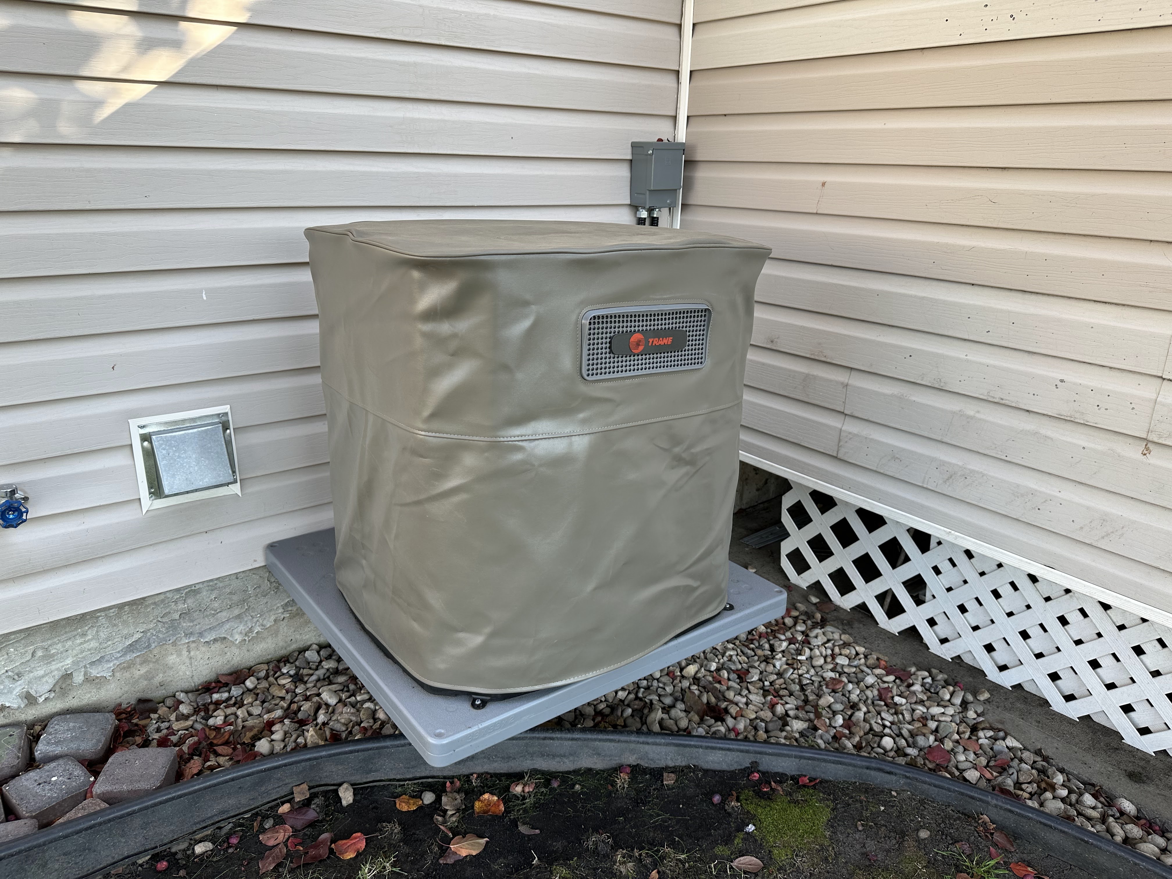 I did decide to take off the garden hoses – front and back – and drain and store them for the winter. The AC is switched off too, cleaned out and the cover is on!