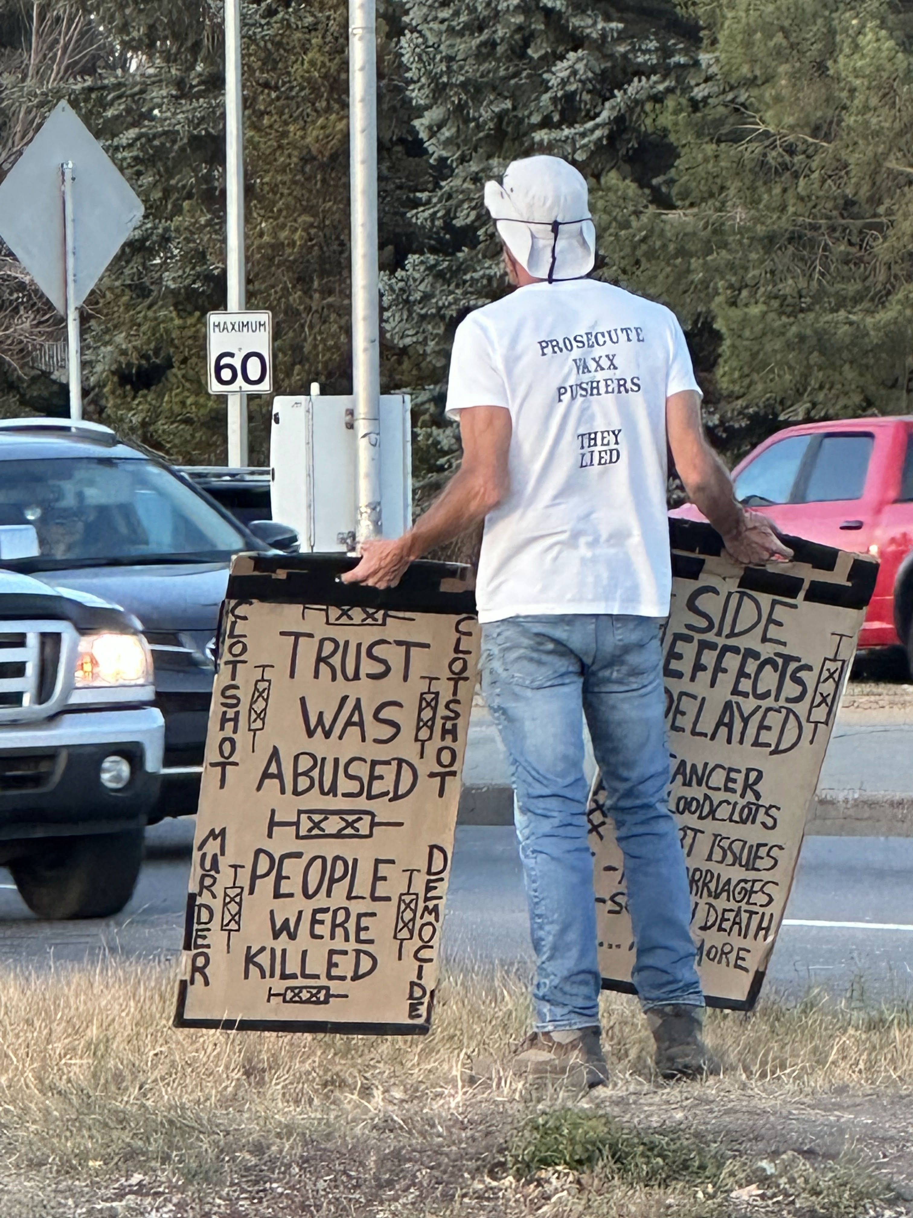I debated putting this picture up. Part of me doesn’t want this publicized and the other part of me thinks it is important to comment on extreme and incorrect positions. Whether this man is suffering from mental health issues or has simply been convinced by some misinformation, the accusation contained here only fuels the flames of division and hatred.