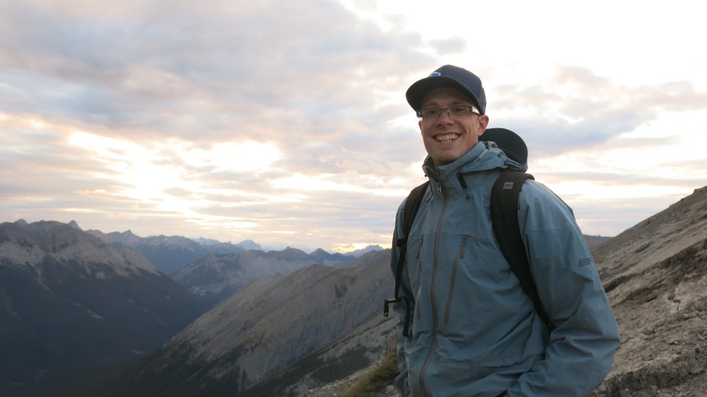 And then there’s the perspective when you’re on top looking down! Here’s Phil with me – I think the last time he and I climbed a mountain. This was a small one as we didn’t start up until after supper. We arrived back at the car in the dark with our headlamps showing the way. There is something quite breathtaking when you’re up there looking down. You really get a sense of the magnitude of the mountain ranges!