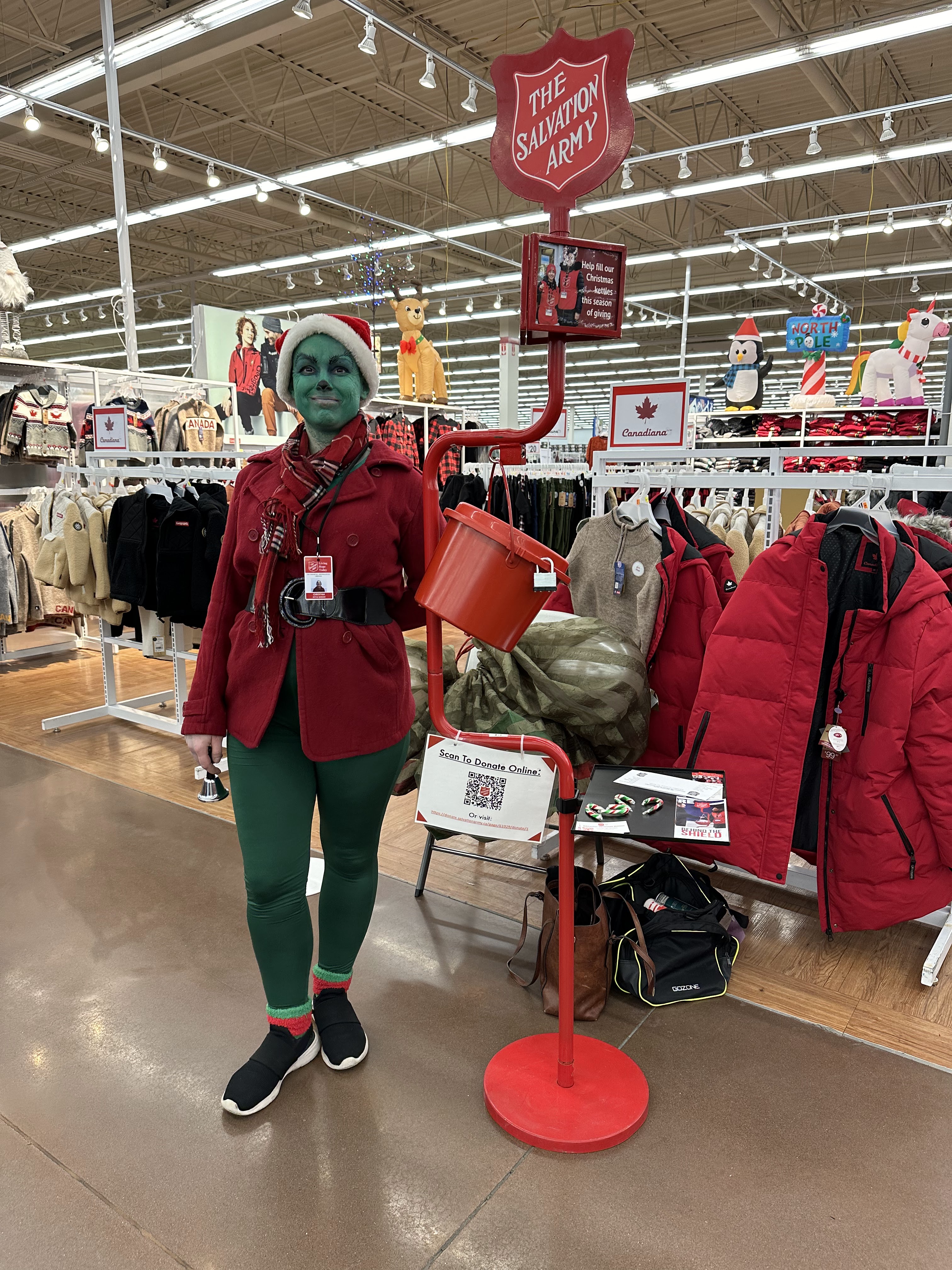 Amid our Christmas shopping – almost done – we ran into WalMart, not my favourite place, to get a couple of things and this young lady was on the kettle. She is the epitome of enthusiasm when it comes to volunteers and Christmas.