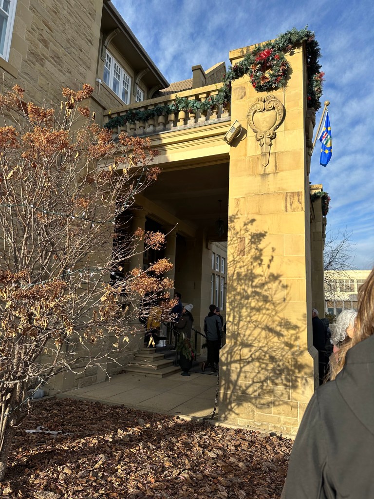 I thought I might be fashionable late arriving 30 minutes after the doors opened to discover quite a long line. Many folks had not dressed for a wait outside and I had not entirely thought that through either. I did have a coat but no hat or gloves. Fortunately and in line with our rather mild winter up to there it was about 2 degrees outside and the sun was shining which it often does here.