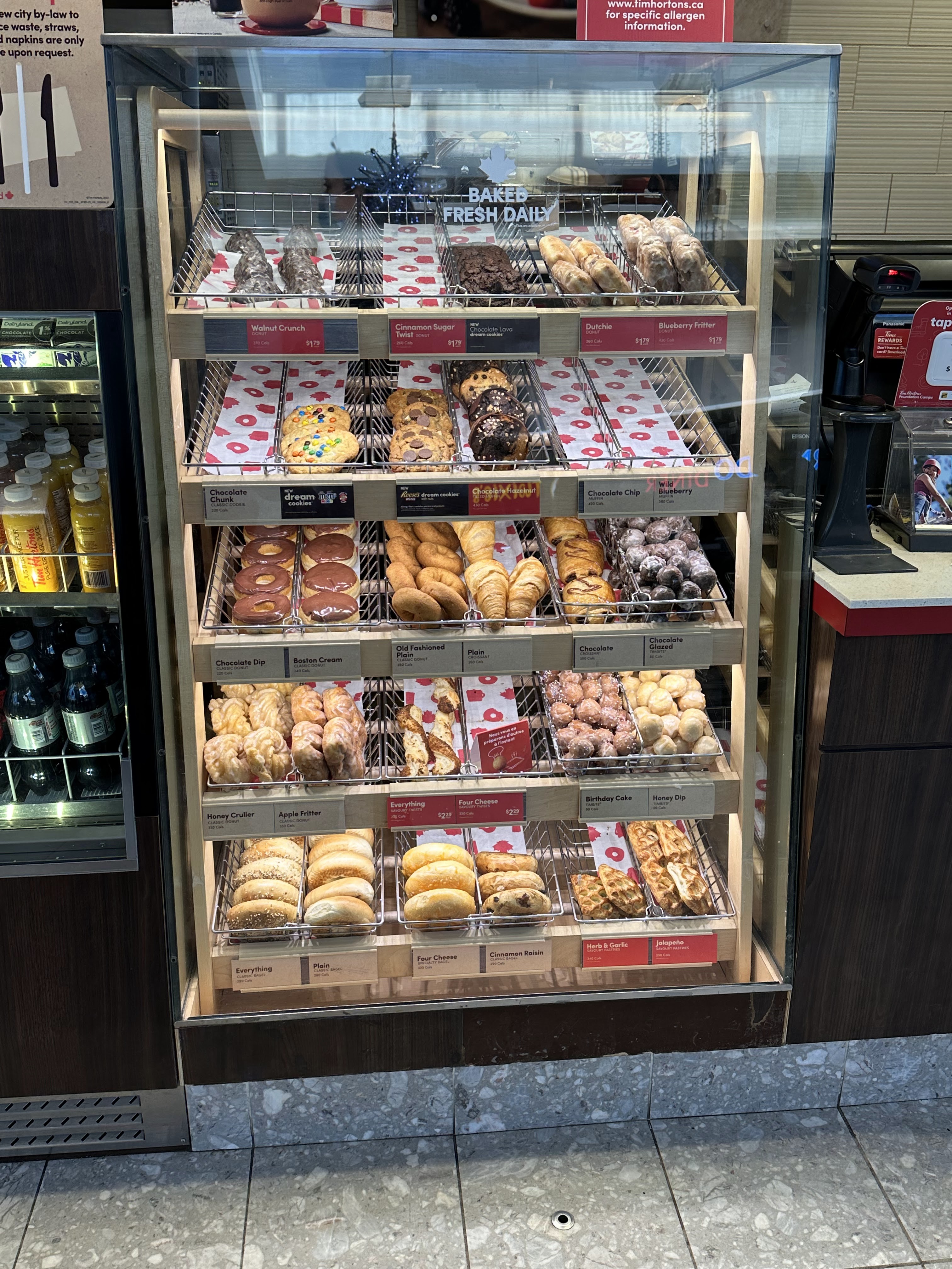 It is so cold that the moisture is falling out of the sky as fog and settling on everything giving things a frosty appearance. But of course, I am not spending a great deal of time outside. But I did make a trip to Tim Horton’s. Now I’ve been critical and disappointed with this-use-to-be-Canadian restaurant. They dropped so many of my favourite things and the service declined steadily for years. It was minus 47 at the airport last night… we were about minus 37 here.