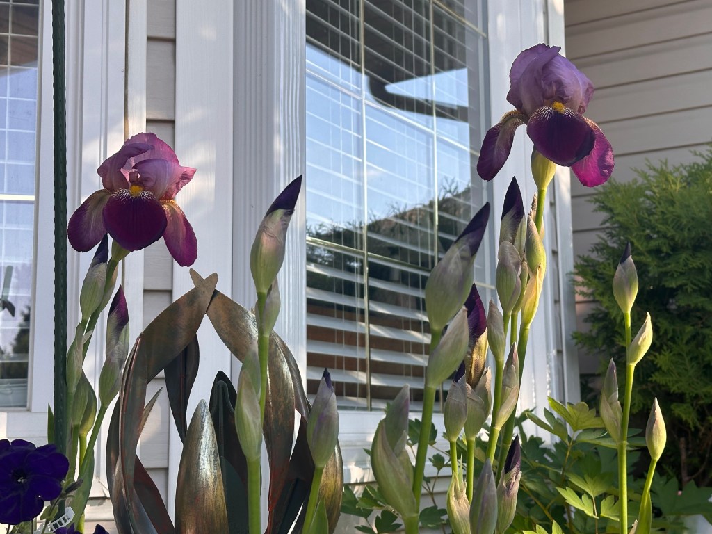 Our Iris’s were opening this week and once again they are beautiful, but they are a bit different in colour But they are gorgeous and I love how big they are and how they look and feel like velvet. In other news the gazebo is up and we’re beginning to enjoy the shade under the afternoon sun. Tonight we had supper out there and it was lovely – mind you it was 26C and we’ve not had many days that warm yet, so that was lovely. We hope to have many enjoyable moments under the canopy.