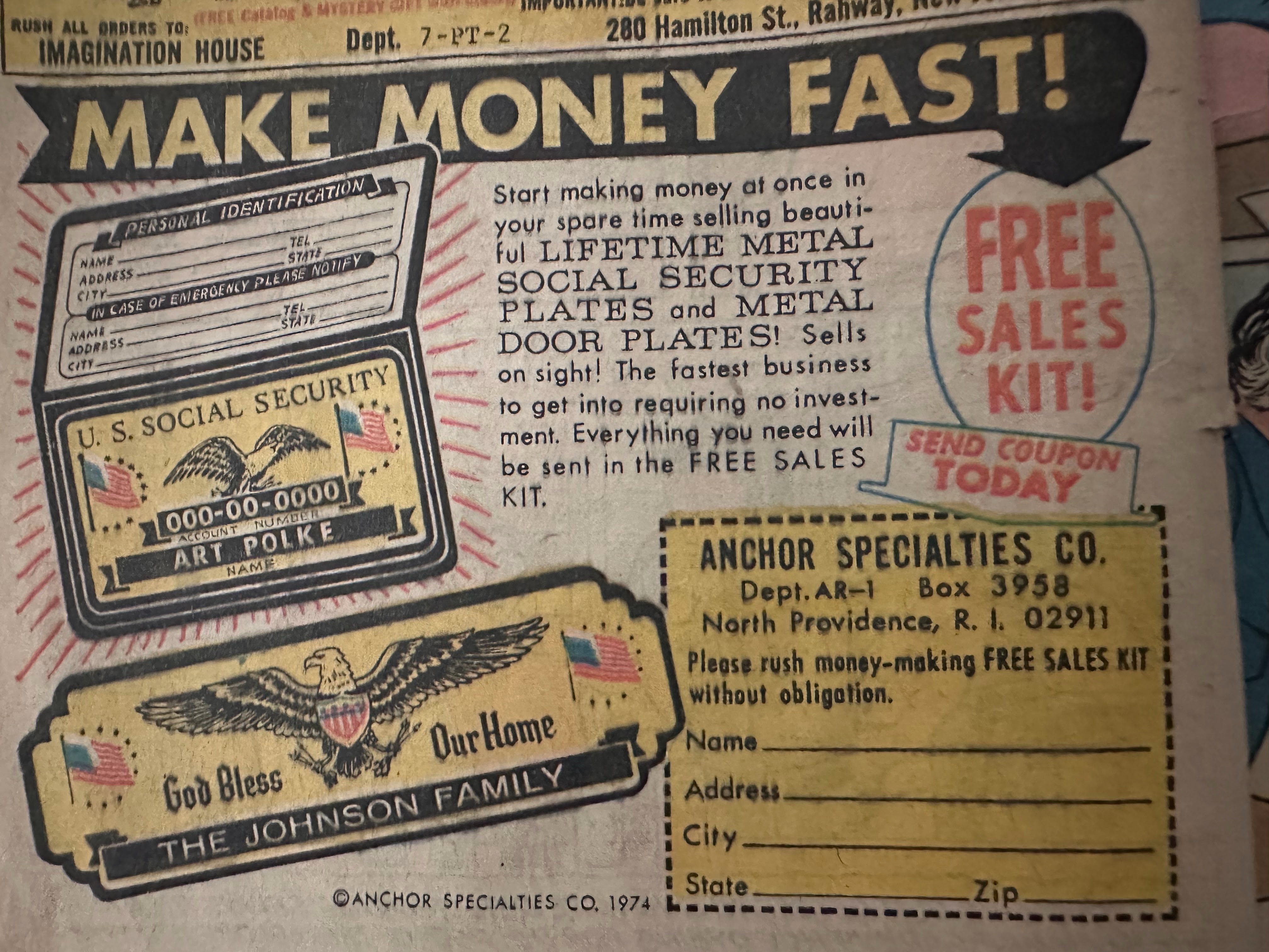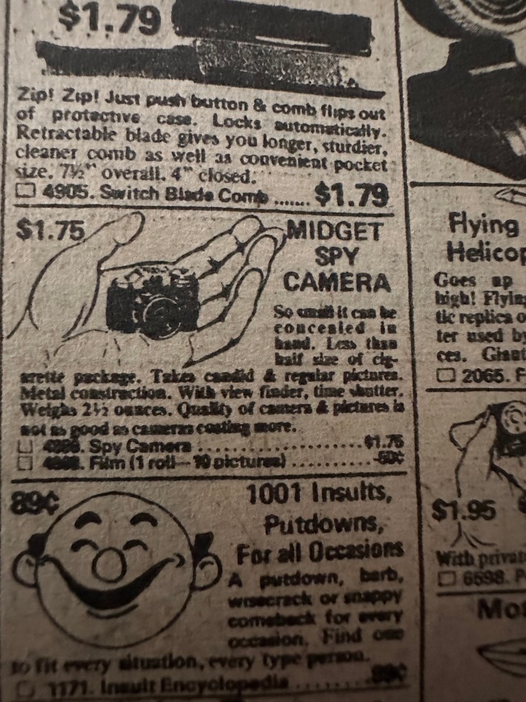 Carlyle was with us for quite a bit this weekend and at one point she brought me one of the ads that were in comics of that era.