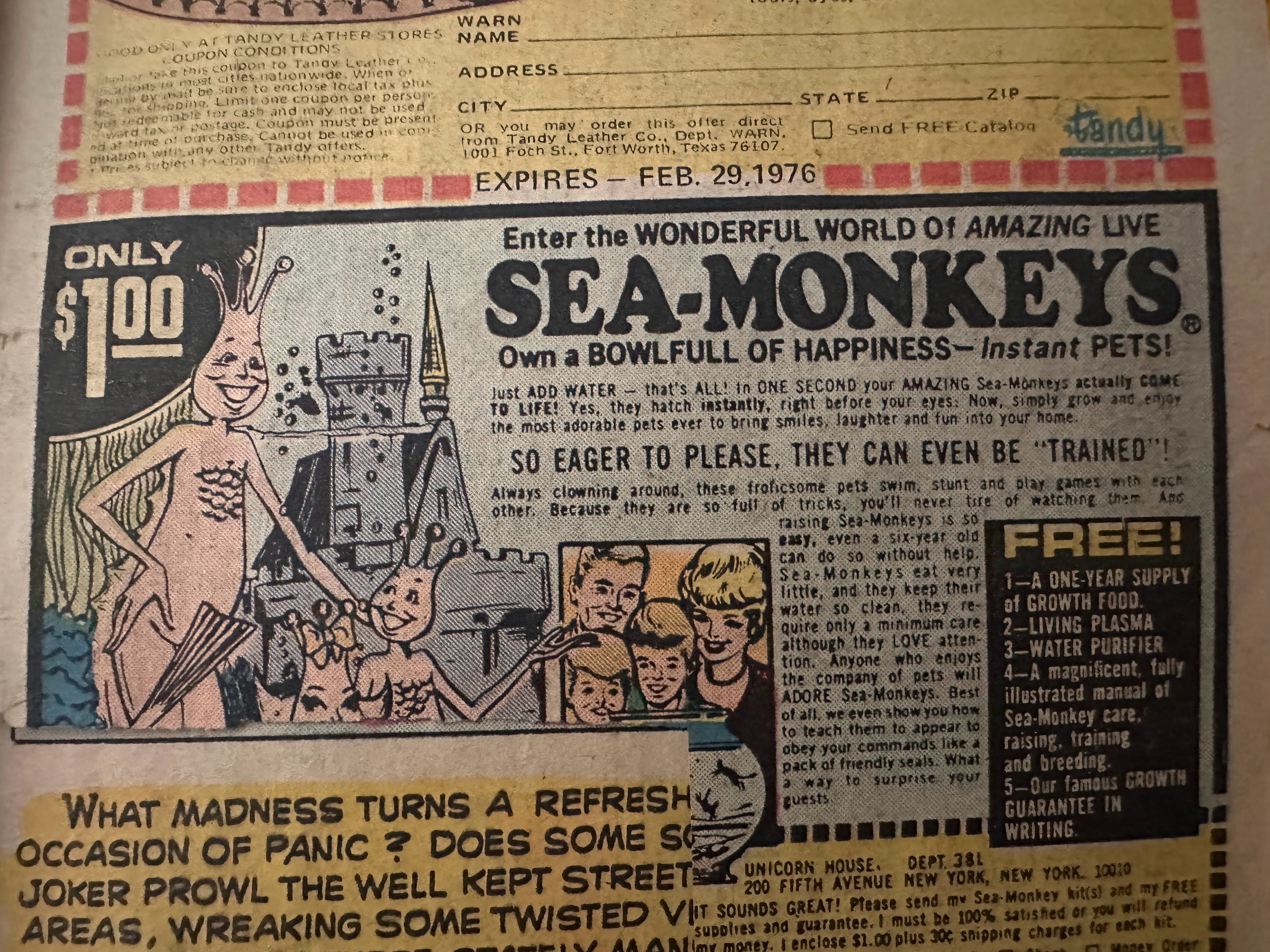 “Were these still available?” she asked. If only they were. But that did cause me to take a look at some of them. I remember these as a kid…my favourite was the offer of SEA MONKEYS!