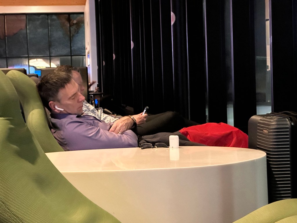 but if you’re going to wait in an airport…I really enjoyed this lounge chair and had a nice nap on it. Plus there was a terrific supper at Earl’s that West Jet paid for, including dessert! And I was home on Friday in time to have everyone over for supper and a movie.