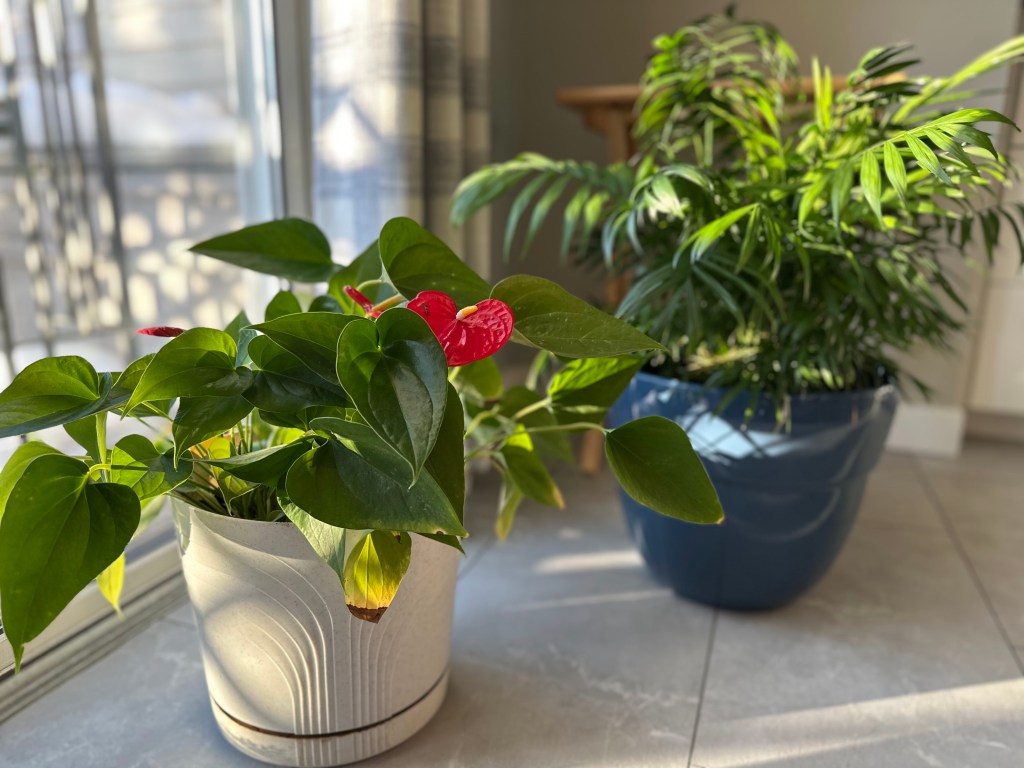 And then of course we have a lovely set of sliding glass doors at the back and in the afternoon we get bright sunshine into those doors and into the house. Our plants love that spot!