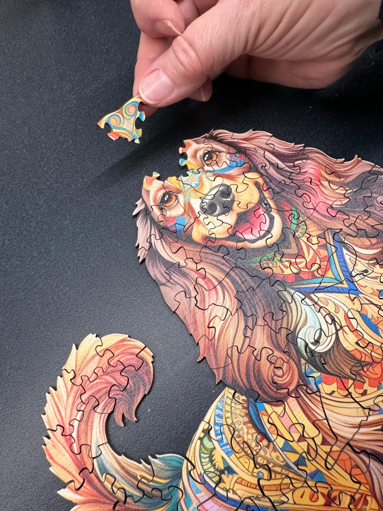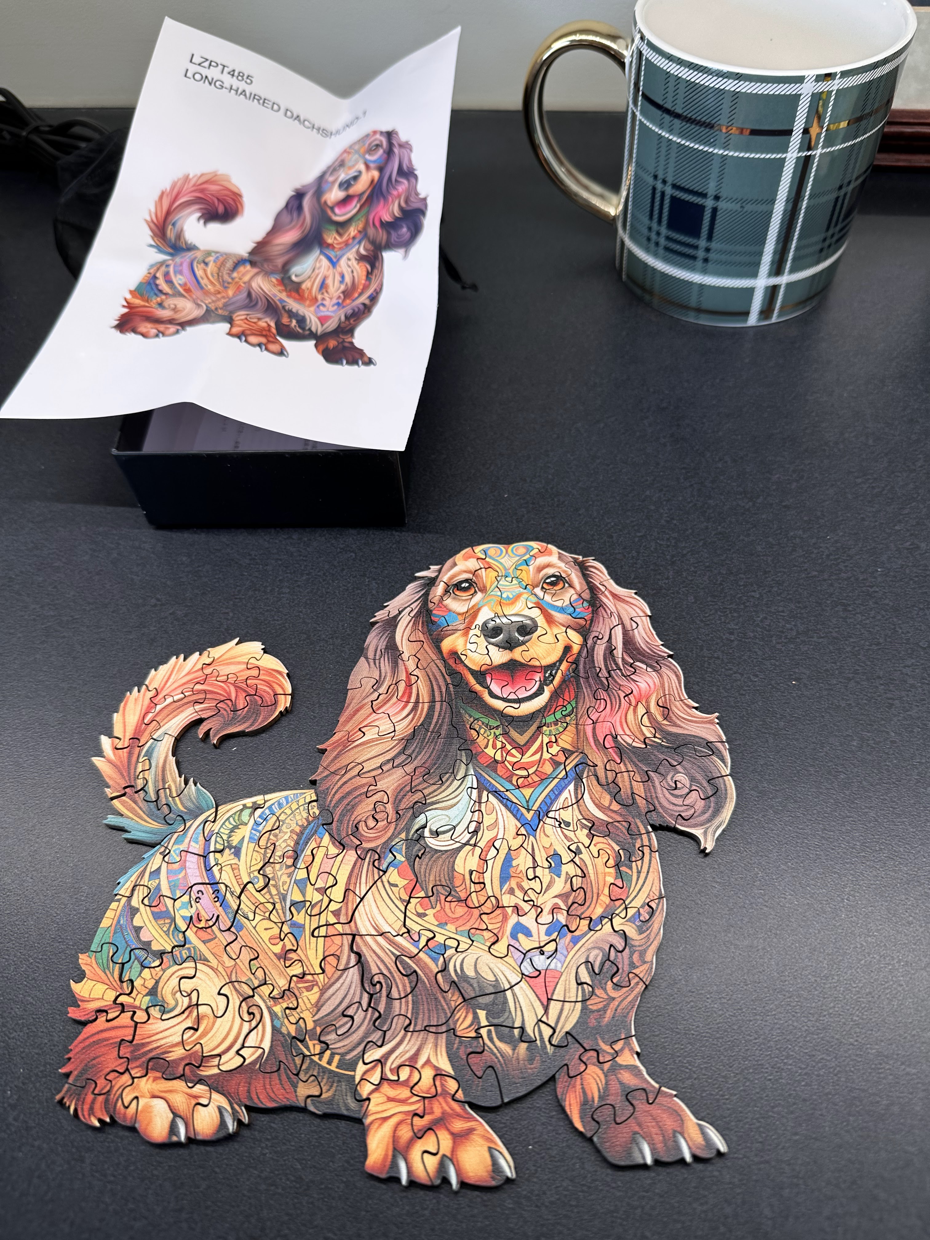 Our friend Toni gave us a lovely gift when they came to visit – knowing that we were looking at Daschounds she gifted Wendy a lovely small but challenging puzzle – the pieces are all sorts of shapes but many of them are the shape of a dog, or a head, or a bone, or something related to dogs!