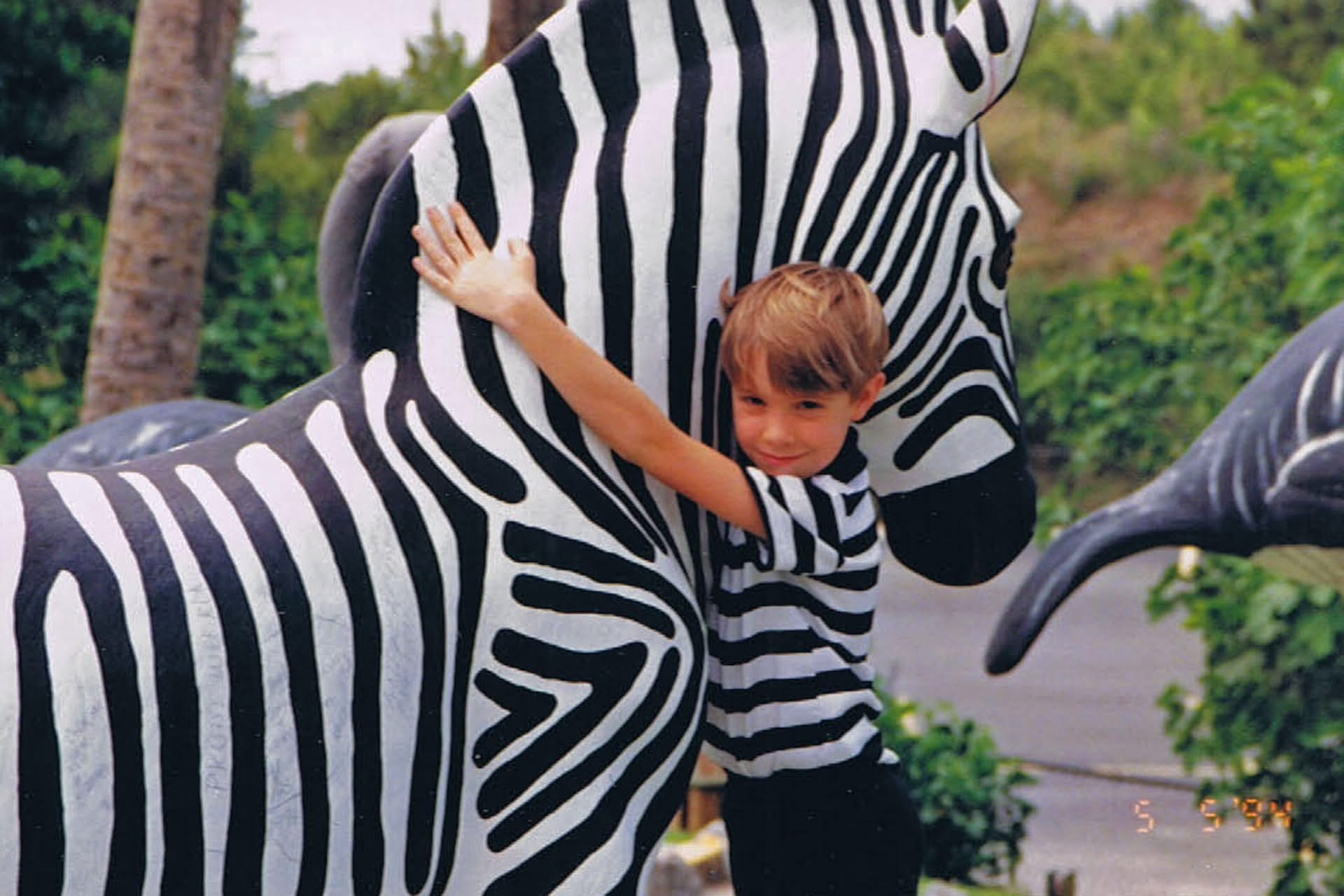 Lastly, one of my favourite photos showed up in my “memories” this past week. We had been travelling as a family from Ottawa to Myrtle Beach. Just north of MB is a tacky place filled with tons of interesting but tacky (my mother’s word) stuff. I saw this Zebra and looked at Philip in his stripped shirt, so I asked him to go give the Zebra a hug while I took his photo. It worked great!