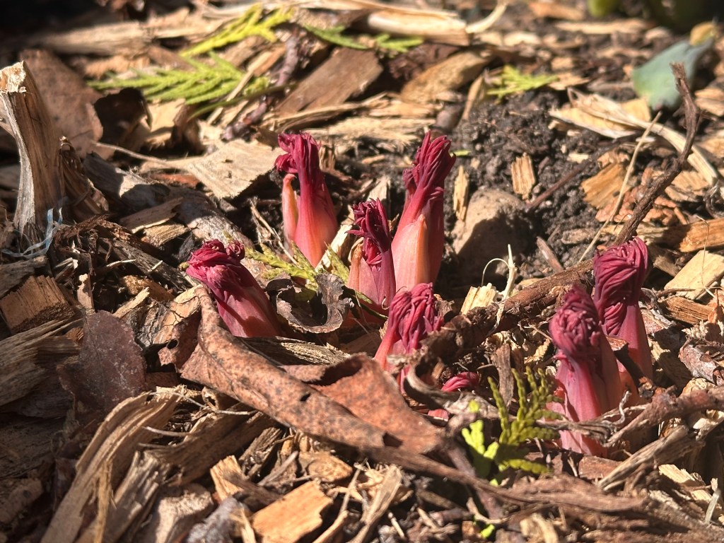 The gardens are coming to life. Praise the LORD the poppies survived the winter. I piled lots of leaves on them this year and they are up! Of course the bleeding heart continues to surge. They grow early and fast and they flower early.