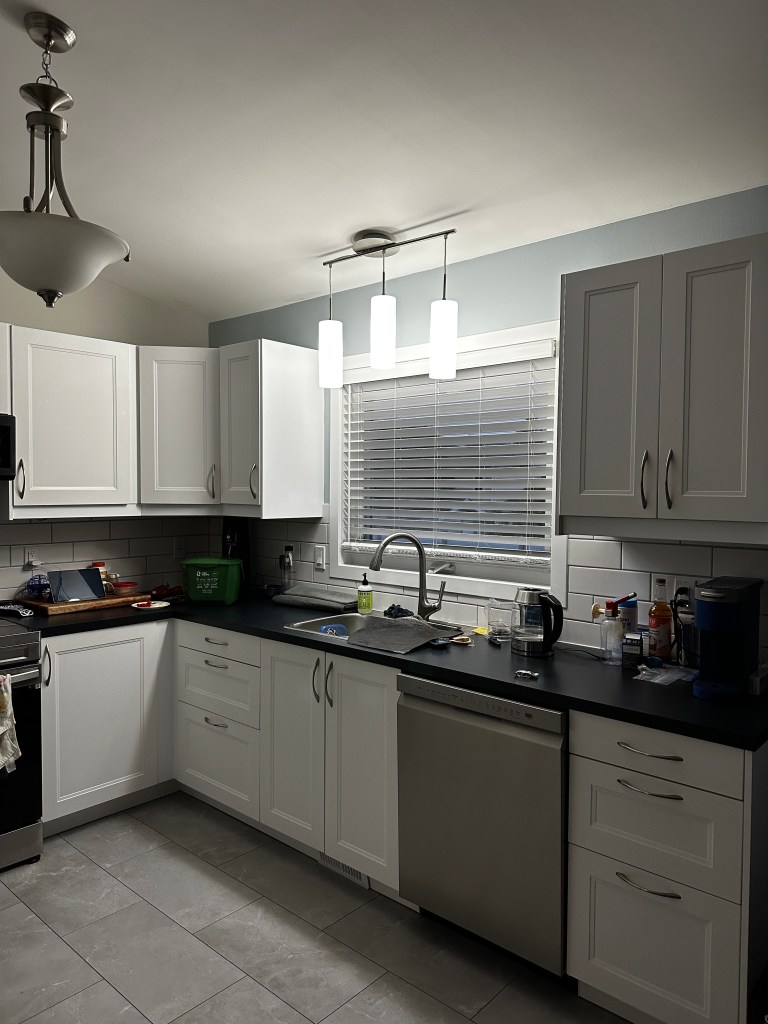 We have now passed the anniversary of our taking possession of our beautiful condo. Philip has worked diligently over time to redo this place, and we are slowly getting towards the end of the things we wanted to conclude. Yesterday Philip hung our light over the sink – it’s really perfect and we’re glad to have that done. The bathroom is almost completed – maybe today!?