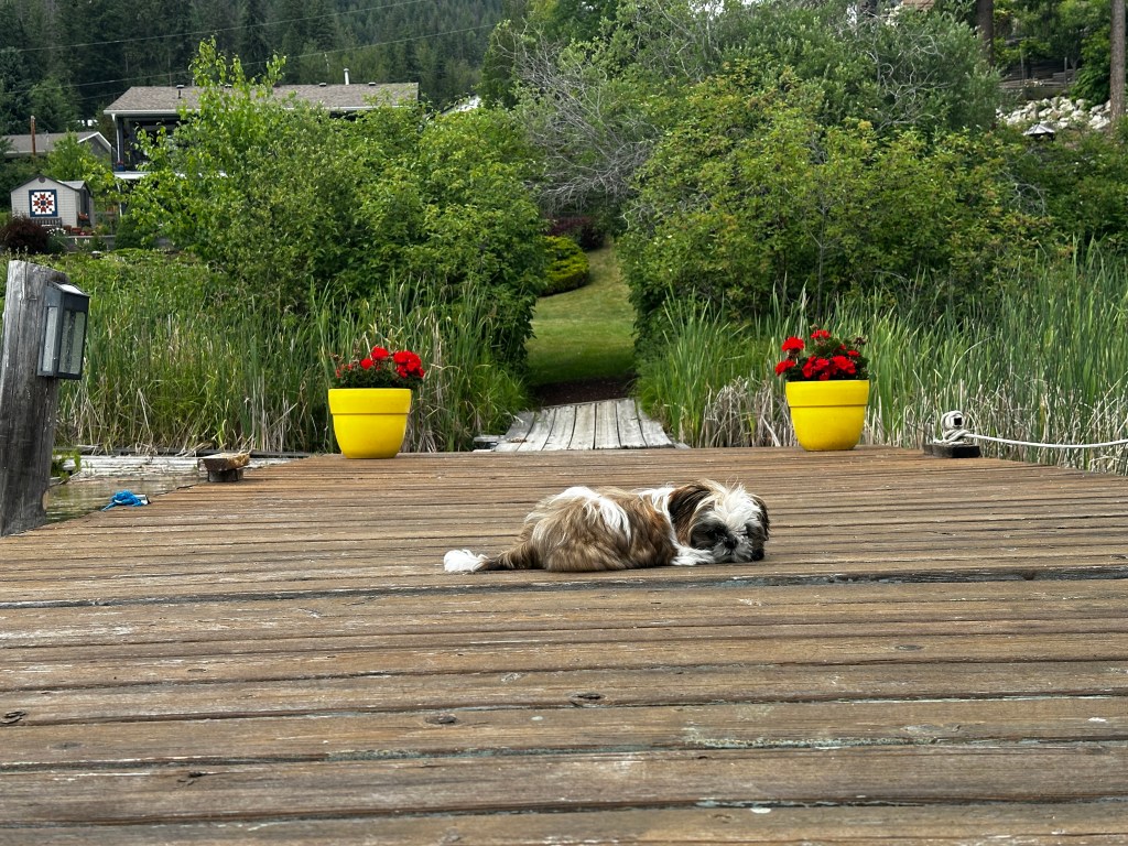 Yesterday however, after taking him down to the dock a couple of times, he got a bit bolder and splash he went head first into the lake. I wish I had taken a picture but I was a bit worried and ran to pull him out (without jumping in fortunately). We gave him a bit of an outside shower and got him dried off, but he does look hilarious when soaking wet. Time for a hair cut it appears.
