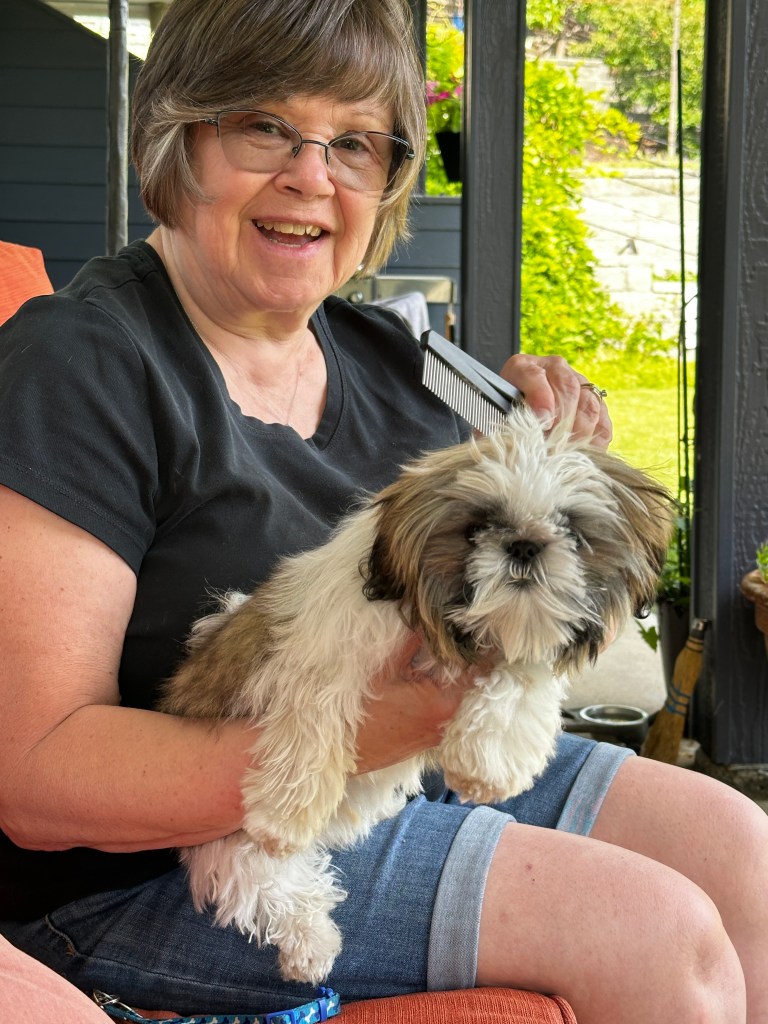 Rick has a game he plays with the dogs – it’s just throwing the ball, but they have to run up hill and then back down the hill to drop the ball. Nugget and almost all Shih Tzu’s know nothing about retreving. It just isn’t in their DNA. Throw the ball, they just look at you like “hey are you going to go get that?”. Nugget however did get into chasing Ebenezer while he ran for the ball. It was great fun and they did it for quite a while – this clip is just a minute of the whole exercise. BTW – Nugget slept really well that night!