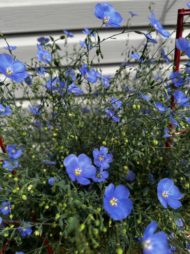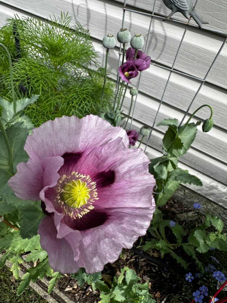 The garden here at our place is doing well. The cosmos are blooming as are the daises. My purple poppies are huge and giving many great blooms. I think they will spread naturally from here and will need some controlling. (They can be like weeds). The tomatoes are forming on the plants, the small apples have begun on our tree. The carrots are really doing well as are the peas.