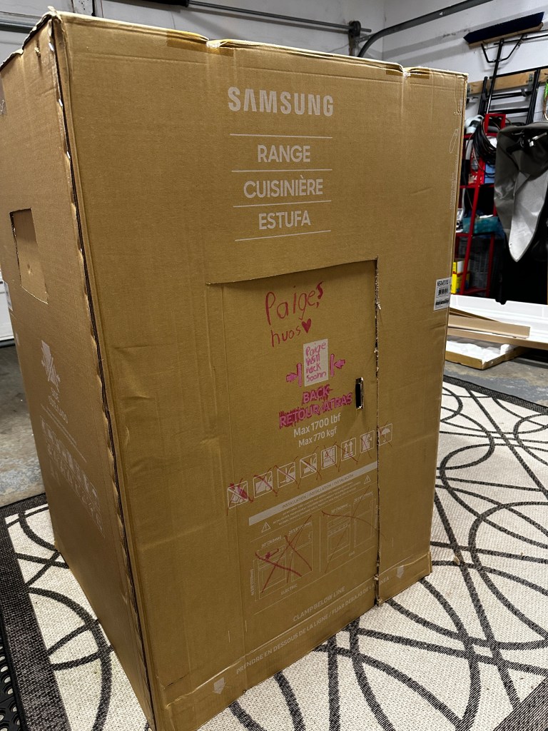 We bought a new appliance which gave Paige a chance to make a little “house” for her to play in. She decorated it up and had a hook to hang her things and a door and some windows. I think she really loved it.