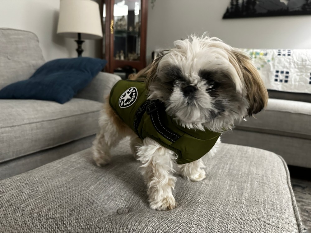 As we come on the air tonight, this breaking news story! Nugget Waters was at the vet’s office today for a weigh-in and his monthly medication (for guarding his intestinal health). Once on the scales he weighed in at exactly 7 pounds!