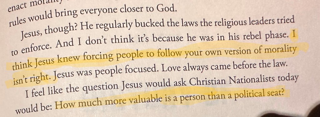 January 2025 began with a very exciting proposition…we were getting a puppy! I would say in many regards Nugget (though we had no name yet) was the biggest story of our year. But let me start with the book I was reading on January 1, 2025. It was Star Spangled Jesus, a look at the rise of the white evangelical churches’ love affair with the Republican Party. A tragic story when seen in the light of the whole Bible… I took this shot of one of the pages out of that book. Oh, and it marked the pardon of all those who stormed the Capitol building in Washington. And that set the tone for what has happened since.