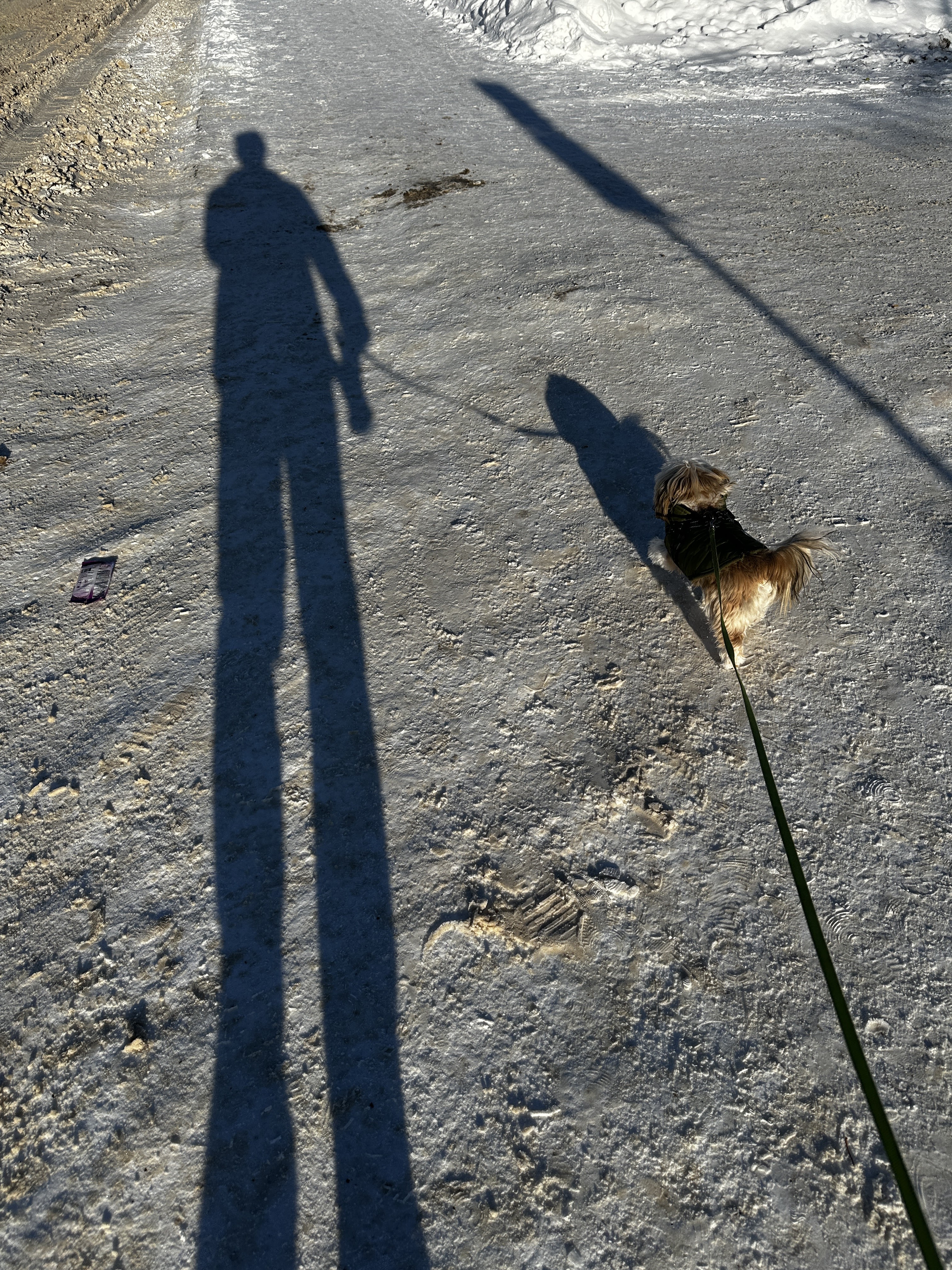 I was out walking Nugget the other day, and the sun was low, so our shadows were long. It got me thinking about the shadow we cast. I think the old song “Me and My Shadow” was a recognition of the fact that our shadow goes where we go because our bodies always block any light source. We always have a shadow, even if we aren’t entirely aware of it.