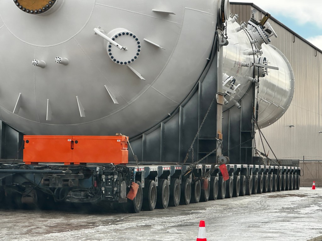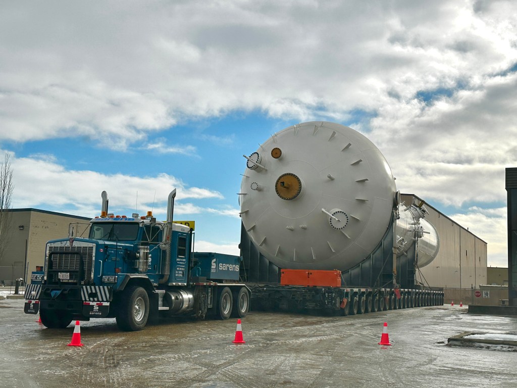 Speaking of trailers, I came across this huge piece of equipment loaded on THIS trailer and ready, or almost ready, to head somewhere. The safe assumption for its destination would be Fort McMurray.