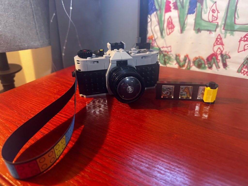 I recently put together a LEGO camera – a throwback to the 35mm format! I’ve always loved cameras, and I remember holding my Mom’s Kodak Brownie camera. My first 35mm camera was a Ricoh; nothing on it was automated. Since then, it’s been a couple of Minoltas, a few Canons but this is my first Lego.