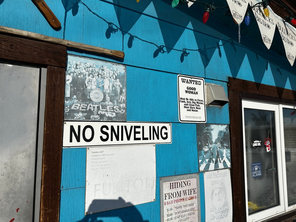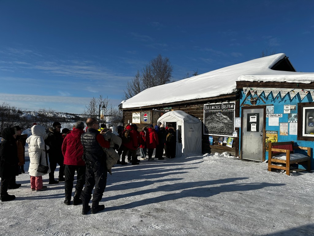 If you know Yellowknife, you know Bullocks Bistro. It’s a must-try if you’re in the area. You must like fish, of course, and you must be hungry. My piece of Slave Lake Cod was huge tonight – and the fries are the kind you have to love – fresh cut potatoes done just right!