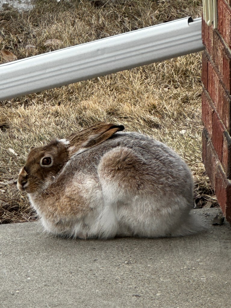 Even our neighbourhood bunny is getting ready for spring, changing his coat. The coyotes, I am sure, would love to invite her for dinner!