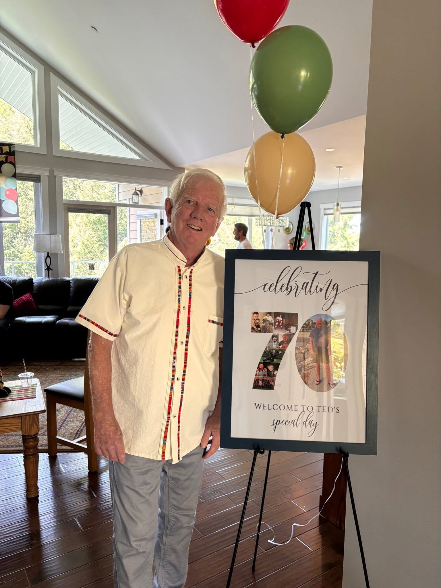 I noted from good ol’ Facebook that my friend Ted had his 70th birthday. We don’t have much connection these days – he’s near Victoria, and we don’t get there too often. Ted and I were good friends in years gone by and shared many childhood experiences, and with our parents being good friends we naturally were around each other often. So wonderful to see pictures of the celebration. I’ve snatched one picture to add here.
